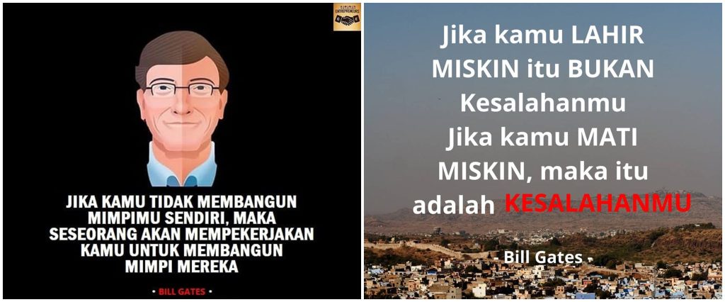 Jika anda adalah karyawan , anda bekerja di bidang pekerjaan yang sama, di perusahaan yang sama, puas dengan kenaikan gaji berkala tahunan yang berkisar 5 persen saja per tahun , pasrah dengan pemotongan gaji yang terjadi . Namun di status whatsapp anda, di profile whatsapp , di instagram , di facebook anda terpasang kata kata motivasi. Anda sebenarnya pasrah menghibur diri anda dengan kata kata motivasi anda yang keren tapi kosong karena nihil aksi.