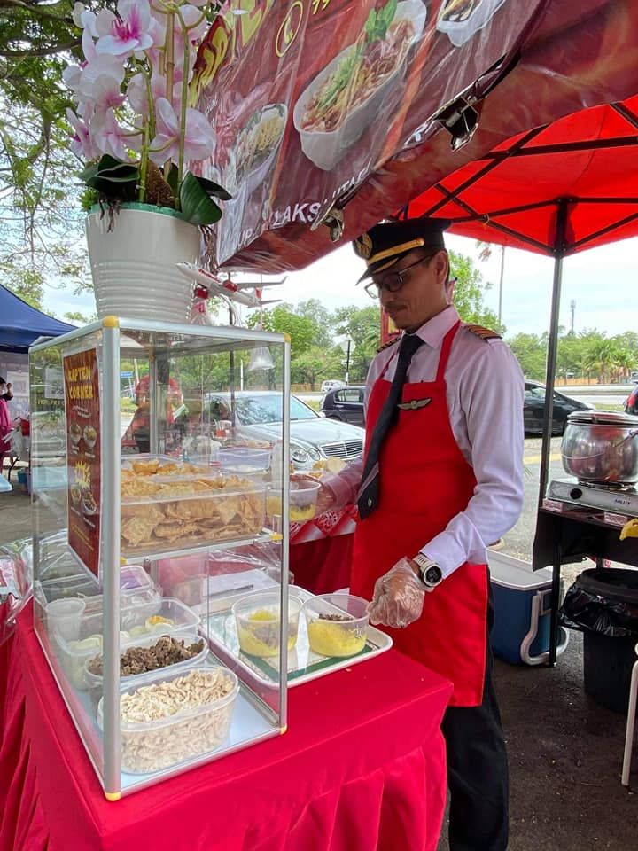 Dilansir dari Says (04/11), pilot ini berjualan rujak dan makanan lainnya untuk memenuhi kebutuhan sehari-hari. Bermodalkan meja kecil dan peralatan seadanya, pilot bernama Azrin Mohamad Zawawi ini berjualan mengenakan seragam pilotnya yang lengkap.